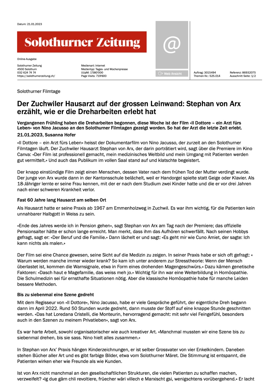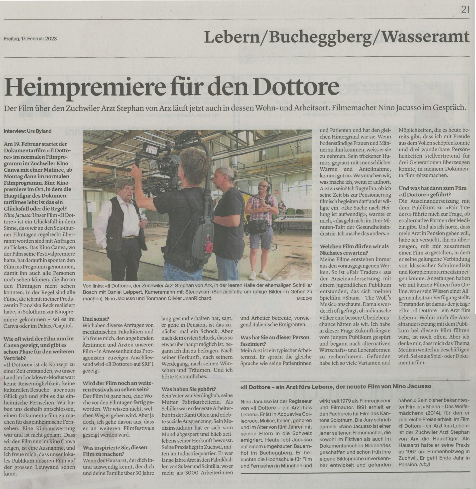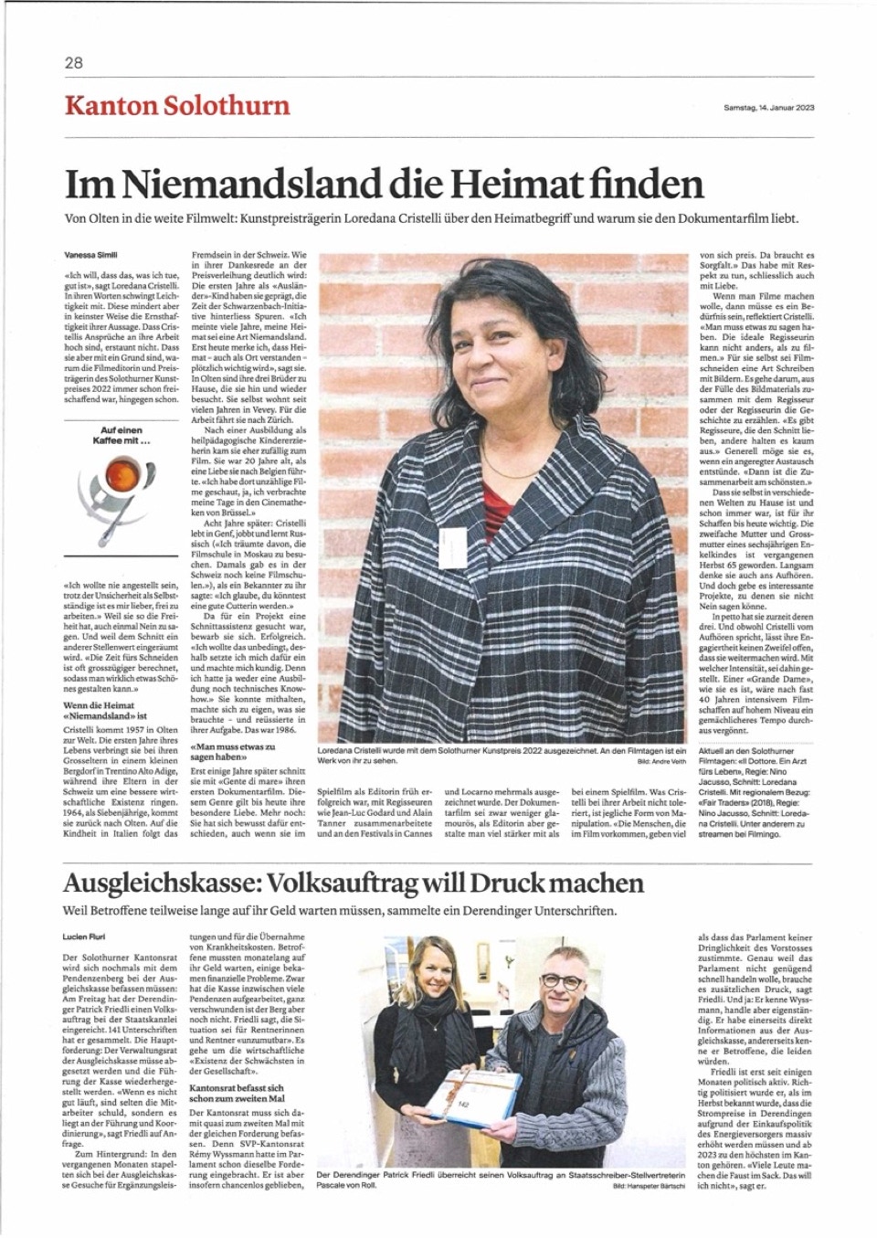 Premiere Solothurner Filmtagen, Donnerstag, 19. Januar 2023